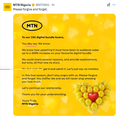 Following this, MTN took to their official X page to address the increase.