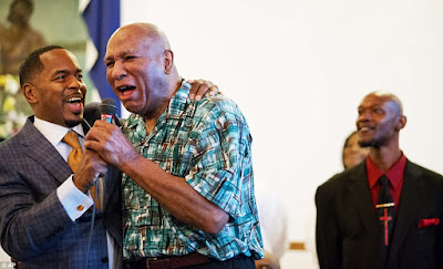 He also clapped and swayed to hymns as the boxer’s hometown began to mark his passing.