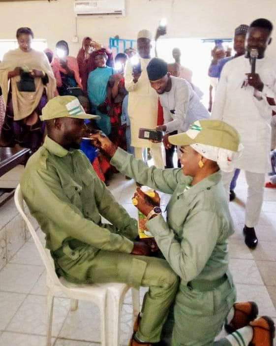 Also responding, the wife to be, Ms Bagudu, a native of Nupe, Niger State, said she accepted his proposal because she noticed his gentleness and kindness during their three weeks stay in the orientation camp.