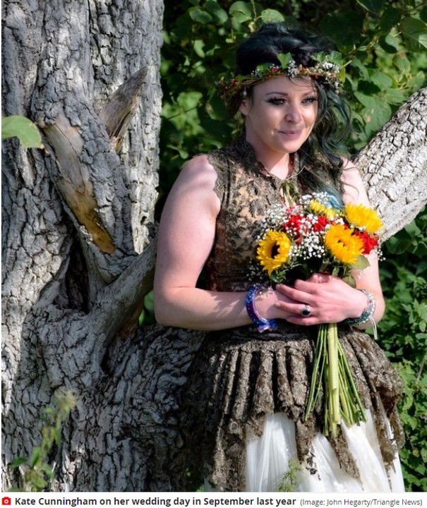 Kate Cunningham, 38, said it was one of the best decisions she has ever made when she married the tree at Rimrose Valley Country Park in Sefton, Merseyside in September last year.