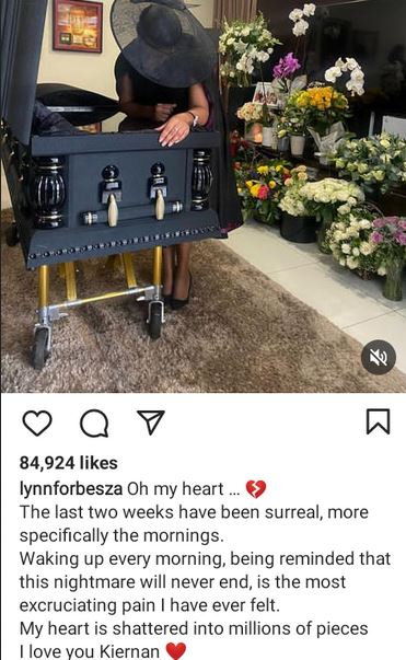 “Oh my heart…The last two weeks have been surreal, more specifically the mornings. Waking up every morning, being reminded that this nightmare will never end, is the most excruciating pain I have ever felt. My heart is shattered into millions of pieces. I love you Kiernan,” she captioned the photo.