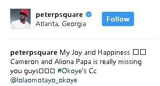 Nigerian Musician, Peter Okoye who is currently in Atlanta, Georgia for a show shared the photo below on his IG page of his lovely kids, Cameron and Aliona.