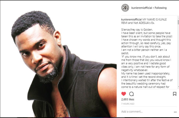 MY NAME IS KUNLE REMI and Not ADESUA’s Ex.