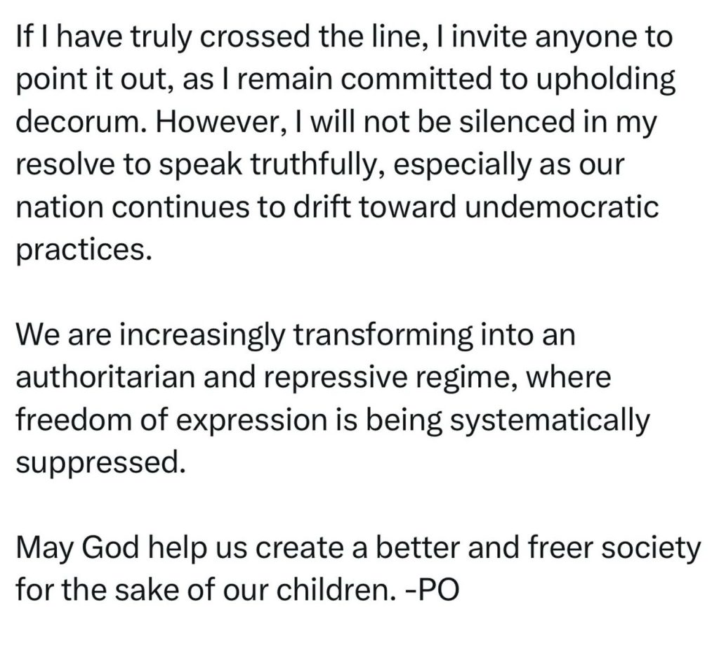 If I have truly crossed the line, I invite anyone to point it out, as I remain committed to upholding decorum. However, I will not be silenced in my resolve to speak truthfully, especially as our nation continues to drift toward undemocratic practices.