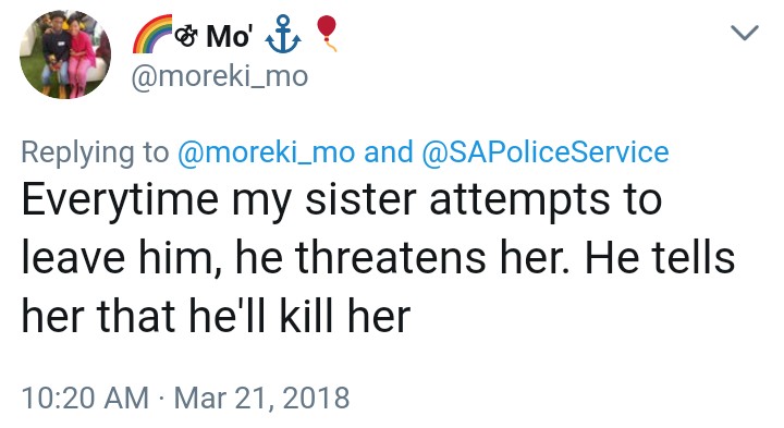 “My sister’s boyfriend who happens to be a member of the @SAPoliceService did this to her. He boldly tells her that he’s a cop and well known, therefore opening a case shouldn’t even gross her mind. He has abused her in the past using the work’s firearm amongst other things”