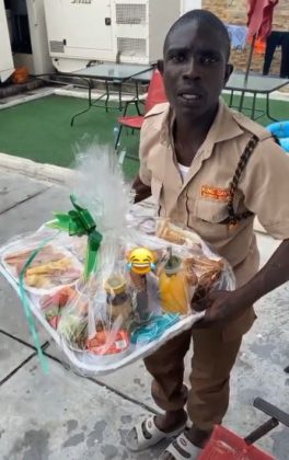 “Oya breakfast for you, enjoy…Finish am!The Gateman who was embarrassed with excitement, managed to muster few words of appreciation saying ;
