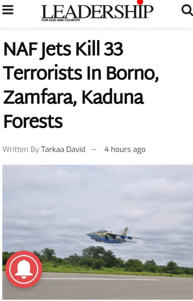 NAF Jets Kill 33 Terrorists In Coordinated Airstrikes In Borno, Zamfara, Kaduna - 9jaflaver