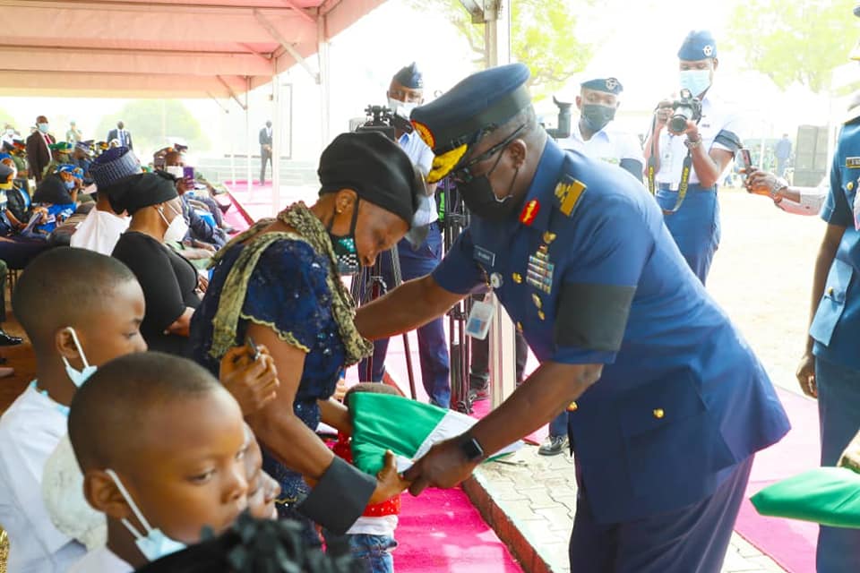 Dignitaries at the burial ceremony included the Special Guest of Honour for the solemn ocassion, the Honourable Minister of Defence, Maj Gen Bashir Magashi (retired); the Executive Governor of Ekiti State, Dr Kayode Fayemi; Chairman Senate Committee on Air Force, Distinguished Senator Bala Ibn Na’ Allah; Chairman House Committee on Air Force, Honourable Shehu Koko; Honourable Minister of Women Affairs, Dame Pauline Tallen; Honourable Minister of Information and Culture, Alhaji Lai Mohammed; Chief of Defence Staff, Major General Lucky Irabor; the Chief of Army Staff, Major General Ibrahim Attahiru; Chief of Naval Staff, Rear Admiral Awwal Gambo; National President Nigerian Air Force Officers’ Wives Association (NAFOWA), Mrs Elizabeth Amao; as well as serving and retired senior military officers, family members and friends of the deceased personnel, amongst other dignitaries.