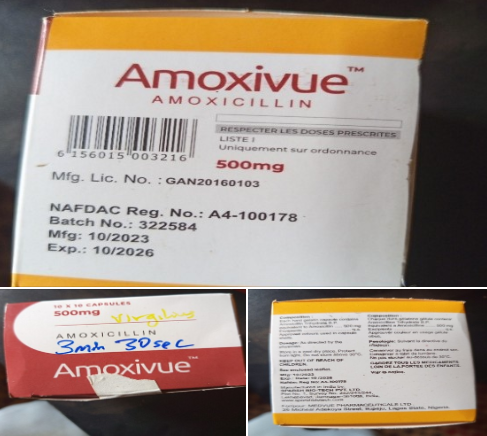 Administration of Amoxivue (Amoxicillin) 500 mg with low levels of amoxicillin may lead to therapeutic failure, antibiotic resistance, increased risk of complications, misleading clinical assessments, and poses a risk to public health.”the statement reads in part