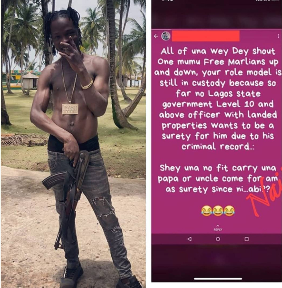 Naira Marley is still in prison because he couldn’t find a “level 10 officer” surety in Lagos state, Nigerian man reveals .