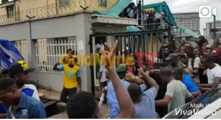 The singer after his arrival, was kept inside the prison section of the court and on stepping out for his hearing, created a security breach as his fans mobbed and almost pushed a security personnel down.