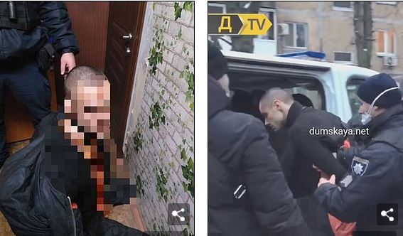 The man spotted by neighbours ‘wrapped in intestines carrying his father’s severed head’ while walking the streets has been arrested in Ukraine.