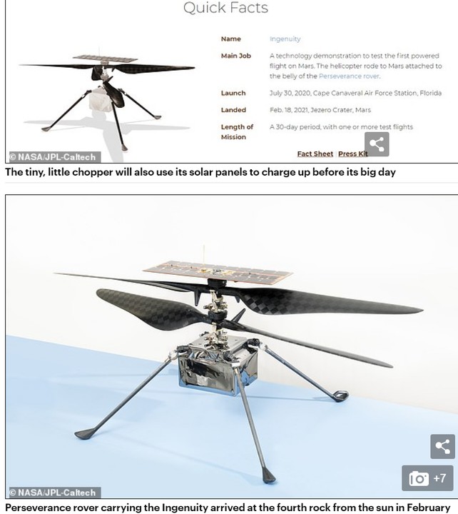 ‘Remaining flights during Ingenuity’s 31-day window will target a maximum altitude of 16.5 feet … with each flight ideally going farther than its predecessor down the designated 300-foot-long range,’ the outlet reported.
