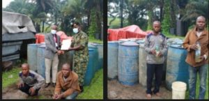 They were smuggling 20 drums of petroleum products (6,000 litres), with a wooden boat, to Bakassi.