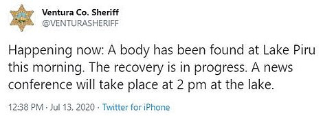 Ventura County officials said Monday, July 13, that a body had been found at the lake, and TMZ claims law enforcement sources have confirmed it is, in fact, Naya. A press conference sharing the news publicly is forthcoming.