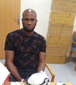 NDLEA said it also arrested a Lagos based drug dealer, Eze Celestine Okorie, following the interception of 4.15kilograms of methamphetamine consignment going to London, the United Kingdom at the NAHCO export shed of the Murtala Muhammed International Airport, Ikeja, on 13th August.