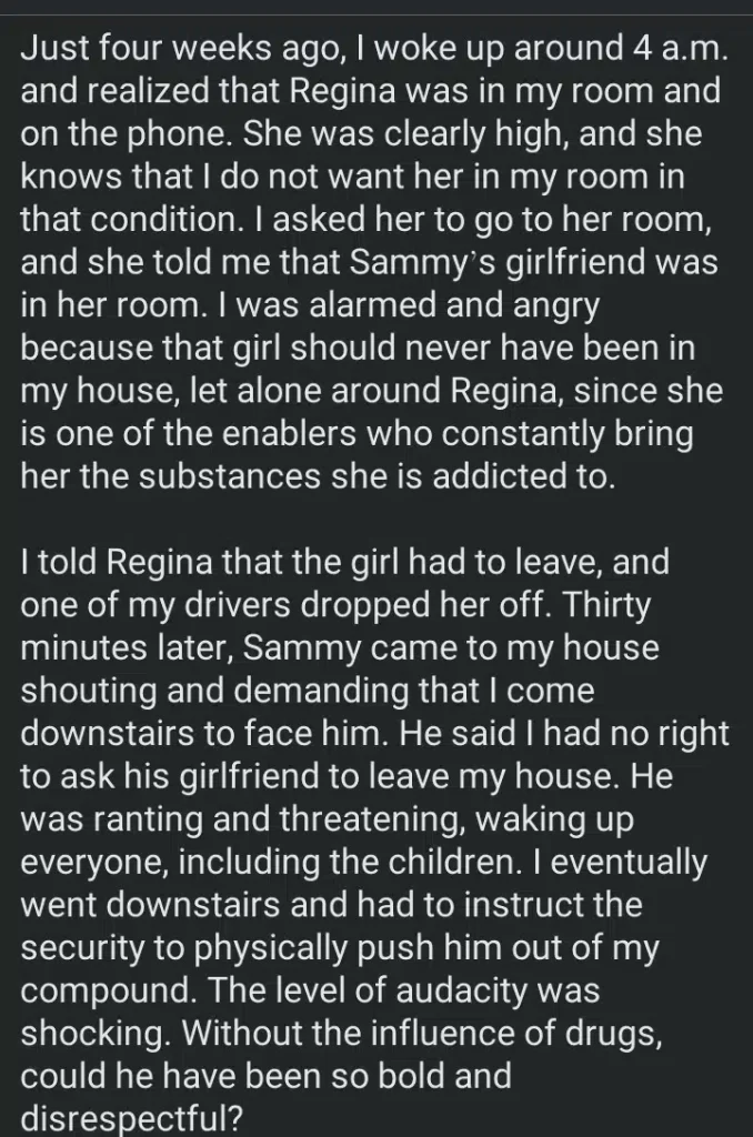 ”In fact, Lawrence and Sammy were the ones who first introduced and supplied these drugs to her. They were deeply involved in the habit themselves, and rather than helping her get better, they kept drawing her back into the same destructive lifestyle“, He stated in the post.