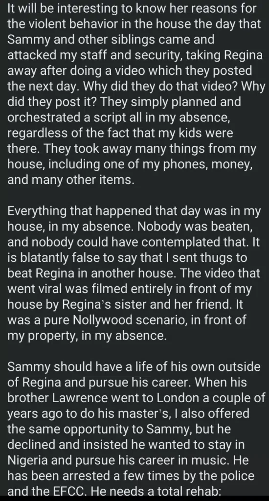 In a lengthy Facebook post, Ned Nwoko accused Sammy of harassing his children and domestic staff, mostly during his absence.