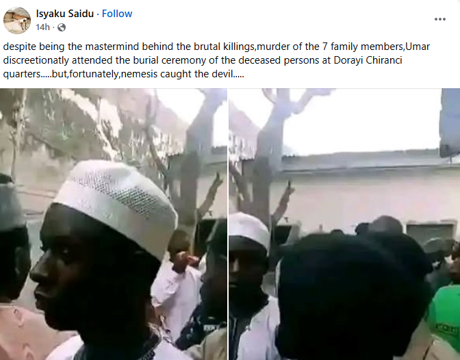 A Kano newscaster, Sadiya Yahaya Isah, has shared a video showing prime suspect, Umar Auwalu during the evacuation of bodies of his aunt and her six children from the m8rder scene.