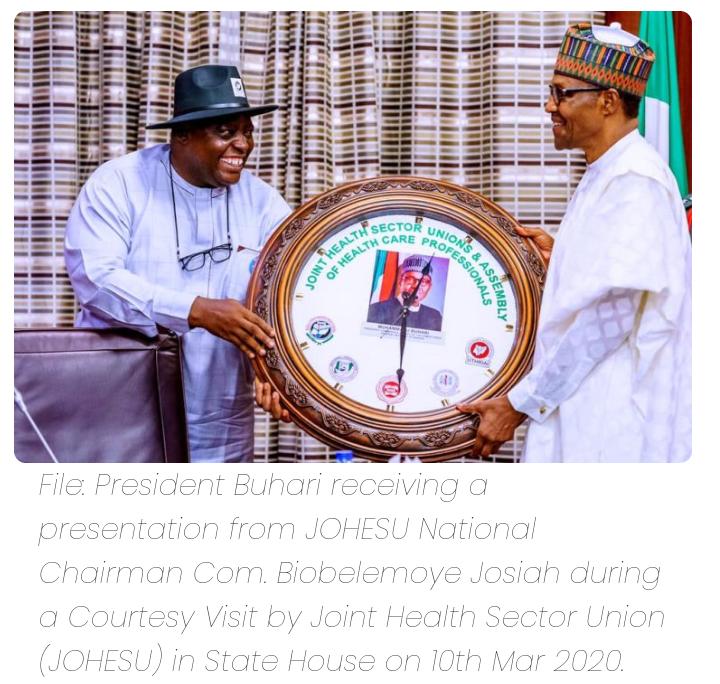 JOHESU president also said others include payment of outstanding salaries of intern health professionals and all the Tertiary Health Institutions, proper implementation of the consultant pharmacist cadre for pharmacists in the public sector, among others.