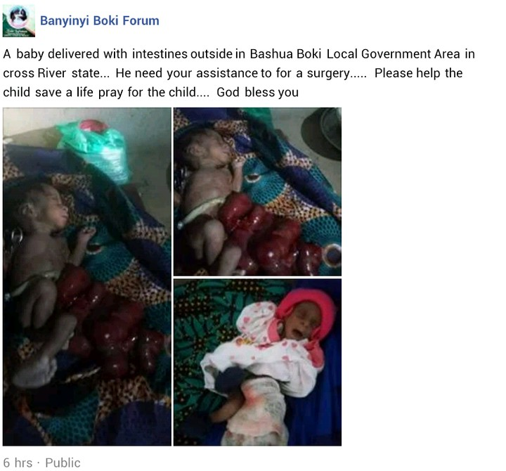 Photos of a baby born with his intestines outside his body have been shared on social media.