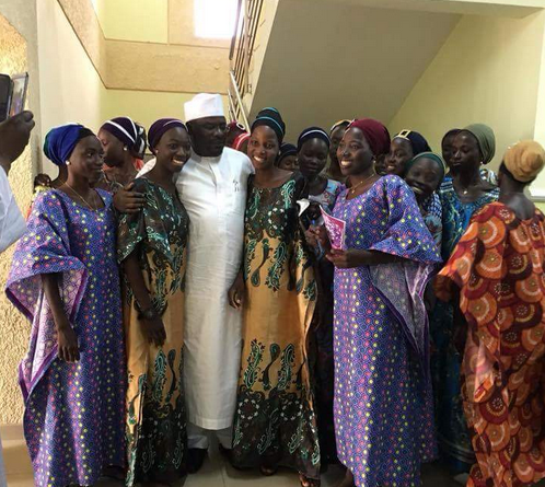 Newly rescued Chibok girls looking all cleaned up in a group picture with Senator Ali Ndume