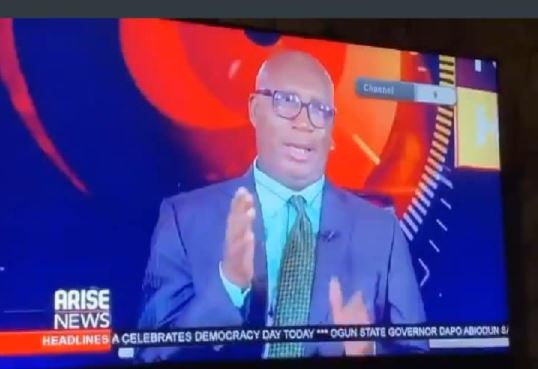 A Nigerian newscaster has been seen caught on camera doing something quite hilarious on air.