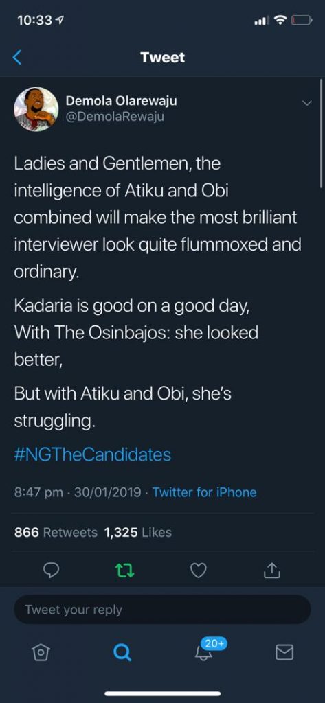 It was an exciting day on twitter yesterday as H.E. Alhaji Atiku Abubakar, the PDP Presidential candidate and his running mate, H.E. Peter Obi held Nigerians spell bound during a live broadcast townhall hosted by Kadaria Ahmed.