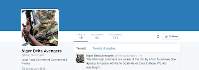 After the suspension of their twitter account, The Niger Delta Avengers have opened Another Twitter Account with the same name but with a different handle @Real_Ndavengers.
