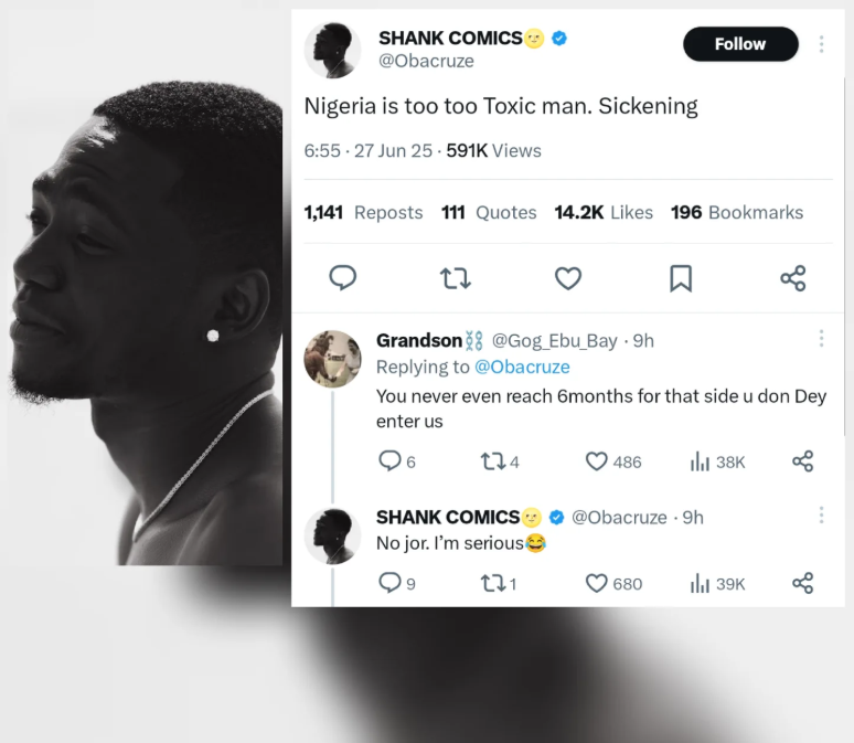 Popular Nigerian skit maker Shank has sparked reactions on social media after declaring Nigeria “too toxic” barely six months after travelling abroad.