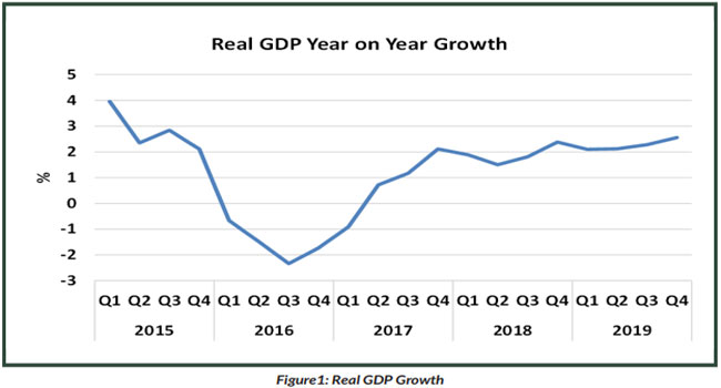 The figure shows an increase of 0.17 per cent points compared to the fourth quarter of 2018 which recorded a growth rate of 2.38 per cent. According to the data agency, the GDP growth also represents an increase of 0.27 per cent points when compared with the third quarter of the year under review.
