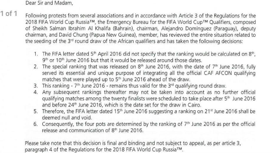 But now, in a sudden turn of events, the governing body of football, FIFA, via a press release on Wednesday night invalidated the ‘Special ranking’ seeding and has now returned Nigeria to pot 2 alongside Egypt.