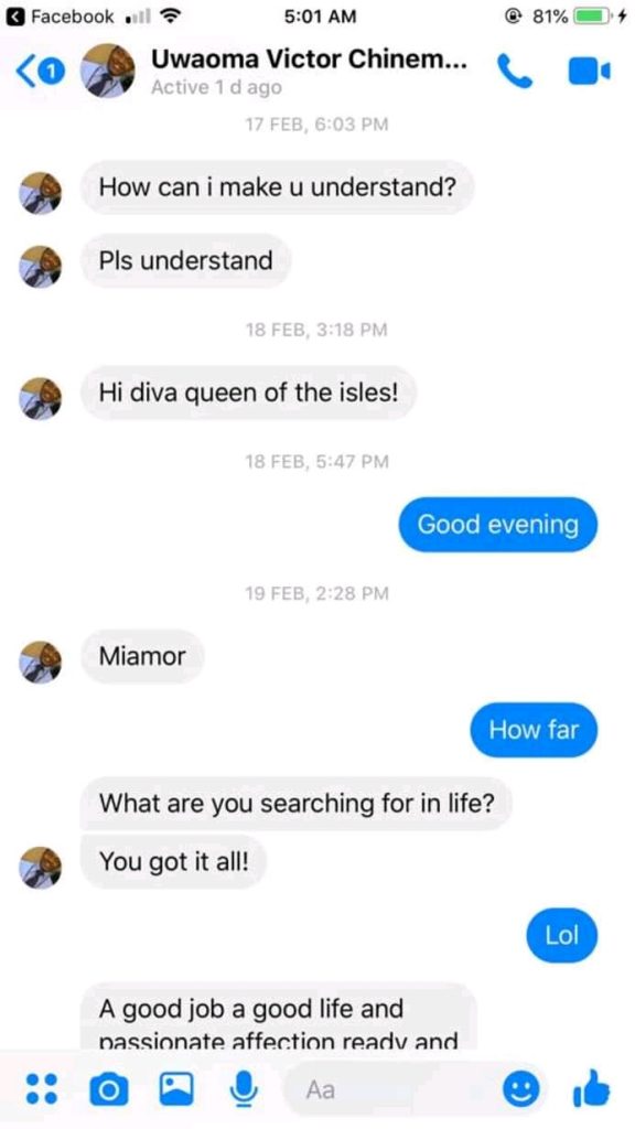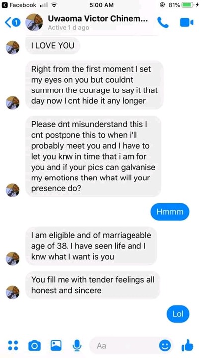 It was gathered that Faith who worked at the Nigerian Ministry of Defence has been getting a lot of proposals from different men, both the fake, the scammer and the jokers.
