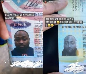 Award-winning singer, Davido took to social media to share photos from his Nigerian and American passports.
