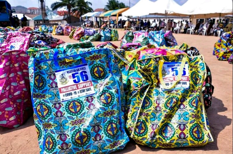 As part of activities to mark its 56th Anniversary, the Nigerian Air Force (NAF) today, 21 April 2020, distributed food items and other palliatives to indigent members of its host communities in Nuwalege, Zamani and Ushafa in the Abuja Municipal and Bwari Area Councils of the Federal Capital Territory (FCT). The palliatives, which were handed over by the Chief of the Air Staff (CAS), Air Marshal Sadique Abubakar, represented by the Chief of Policy and Plans, Air Vice Marshal (AVM) Oladayo Amao, are aimed at complementing the efforts of the Federal Government in assuaging the hardships being experienced by Nigerians due to the lockdown imposed to curb the spread of the novel Coronavirus (COVID-19). Unlike previous NAF Day Celebrations, this year’s anniversary has been scaled down in keeping with the mood of the Nation as well as the need to comply with the stipulated precautionary measures to curb the spread of the virus. The distribution of palliatives to NAF host communities, which commenced today, would also be replicated in all the 6 Geopolitical Zones of the Country and would last until 26 April 2020.