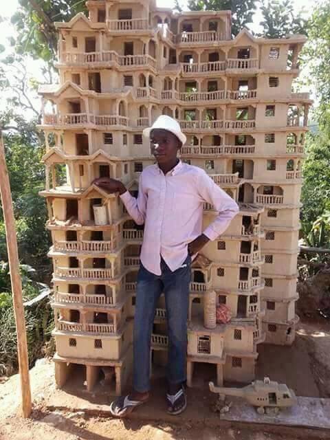 This 16 year old Nigerian boy constructed this 11-storey building with bamboo sticks and pieces of carton.