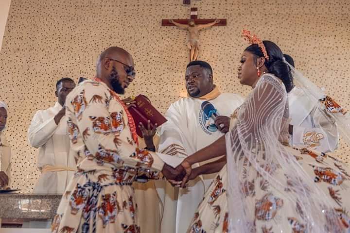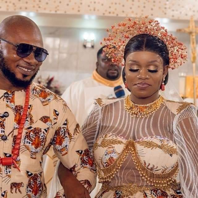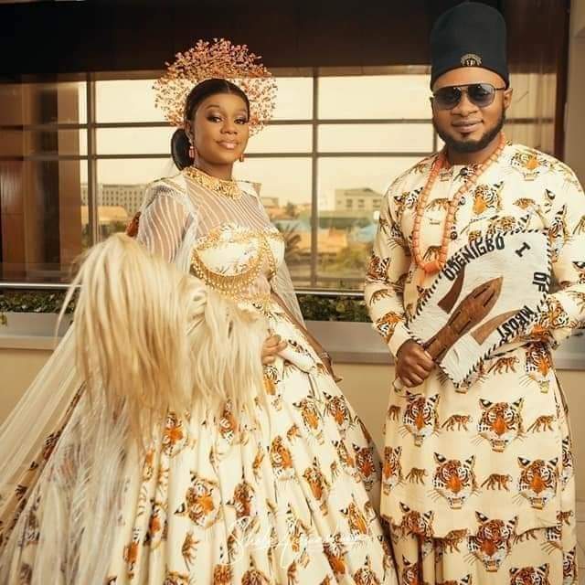 A Nigerian couple were dressed in traditional Isiagu on their church wedding, IgbereTV reports.
