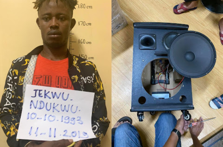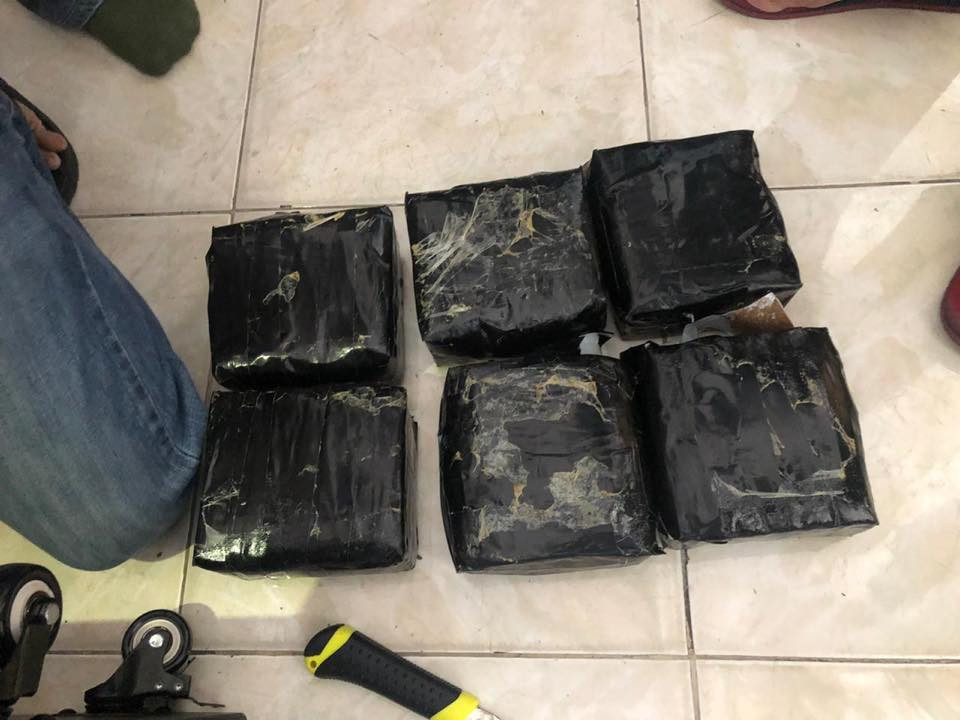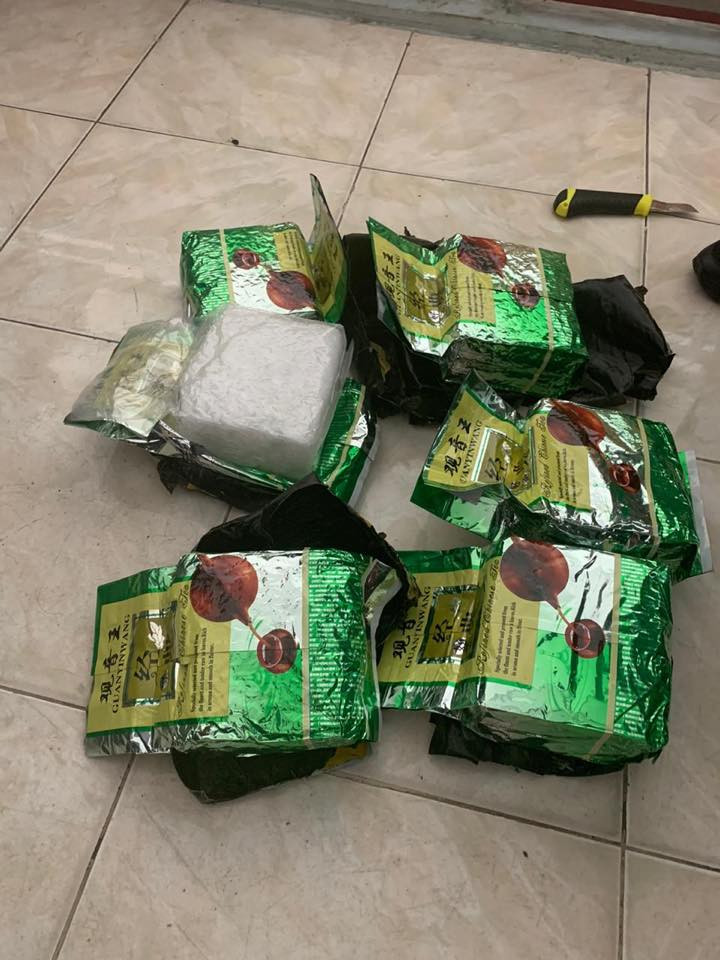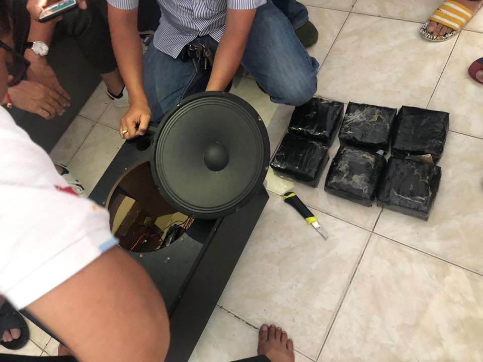 The police found six packs of ICE drug (methamphetamine), weighing 5895.82 grams, hidden in the speaker.