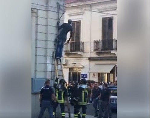 According to reports, police officers in San Francesco da Paola, a few meters from the main entrance of the building, chased him before he reached a square and climbed a building through some service pipelines.