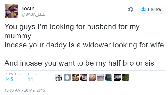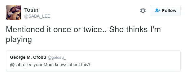 When someone asked her if her mum was aware of what she was doing, Tosin replied: