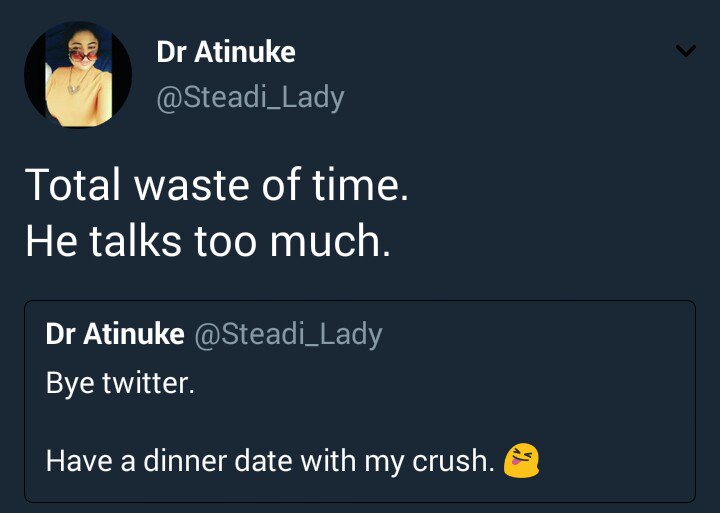 Twitter user @steadi_lady tweeted her delight at finally getting to go on a date with her crush.