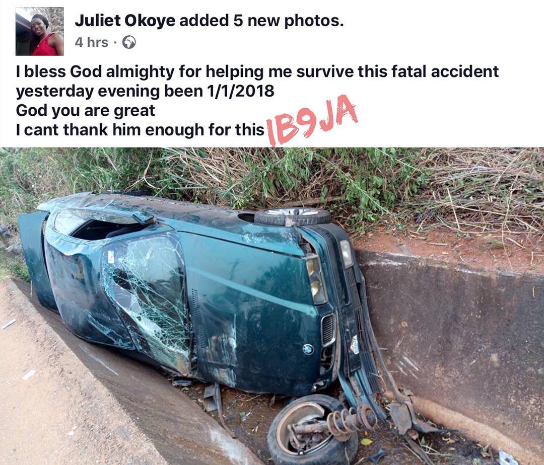 Nigerian Lady Grateful After Surviving A Ghastly Accident On New Year’s Day