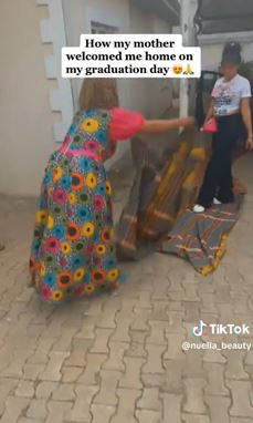 A Nigerian lady has taken to social media to share a video of how she was received by her mother on her graduation day.