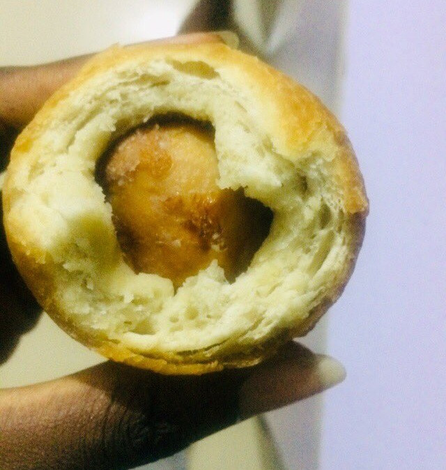 Nigerian Lady Shocked After Discovering ‘Puff-Puff’ Inside An Egg Roll In Lagos (Photos)