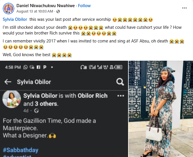 “On Saturday, she was in church and even made a Facebook post. She also called her mother that same day, promising to come and visit. But fate had other plans. That same day, Sylvia pa$$ed away after suffer|ng a se/zur£. A bright future cut sh0rt. A journey never completed. Rest in peace, Sylvia.”