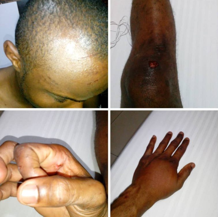 A Nigerian lawyer has shared photos of the injuries he sustained while allegedly preventing the abduction of his ailing father from their home in Aba, Abia state on Wednesday August 7th.