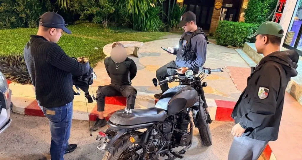 At 9.30 p.m. on Monday, the Tourist Police team spotted Mr. Kanan (surname withheld), 40, a Canadian national, suspiciously riding a motorcycle while wearing black clothes and using a scarf to conceal his face in Ban Tai subdistrict.