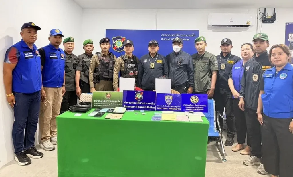 All three suspects and the seized evidence were taken to Koh Phangan police station for further legal proceedings, as authorities continue to expand the investigation into related networks.