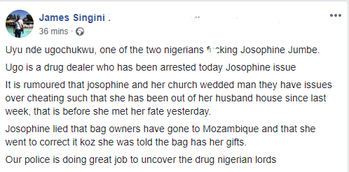 “Then on Tuesday the luggage arrived and Jumbe went to KIA to collect on her behalf. That’s when she was caught at security checkpoint with bag containing illicit drugs suspected to be cocaine,” says the report.