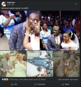 A Nigerian man, Bright Ben has cried out on Facebook accusing his pastor of snatching his wife of 12 years.